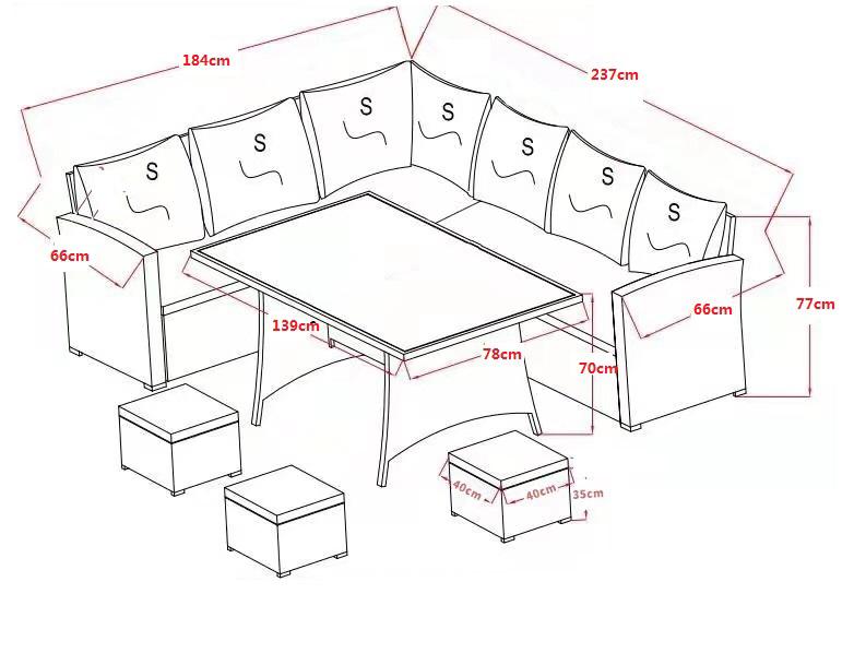 Grey Corner Sofa With Dining Table And 3 Stools: H75 x W237 X D70 cm
