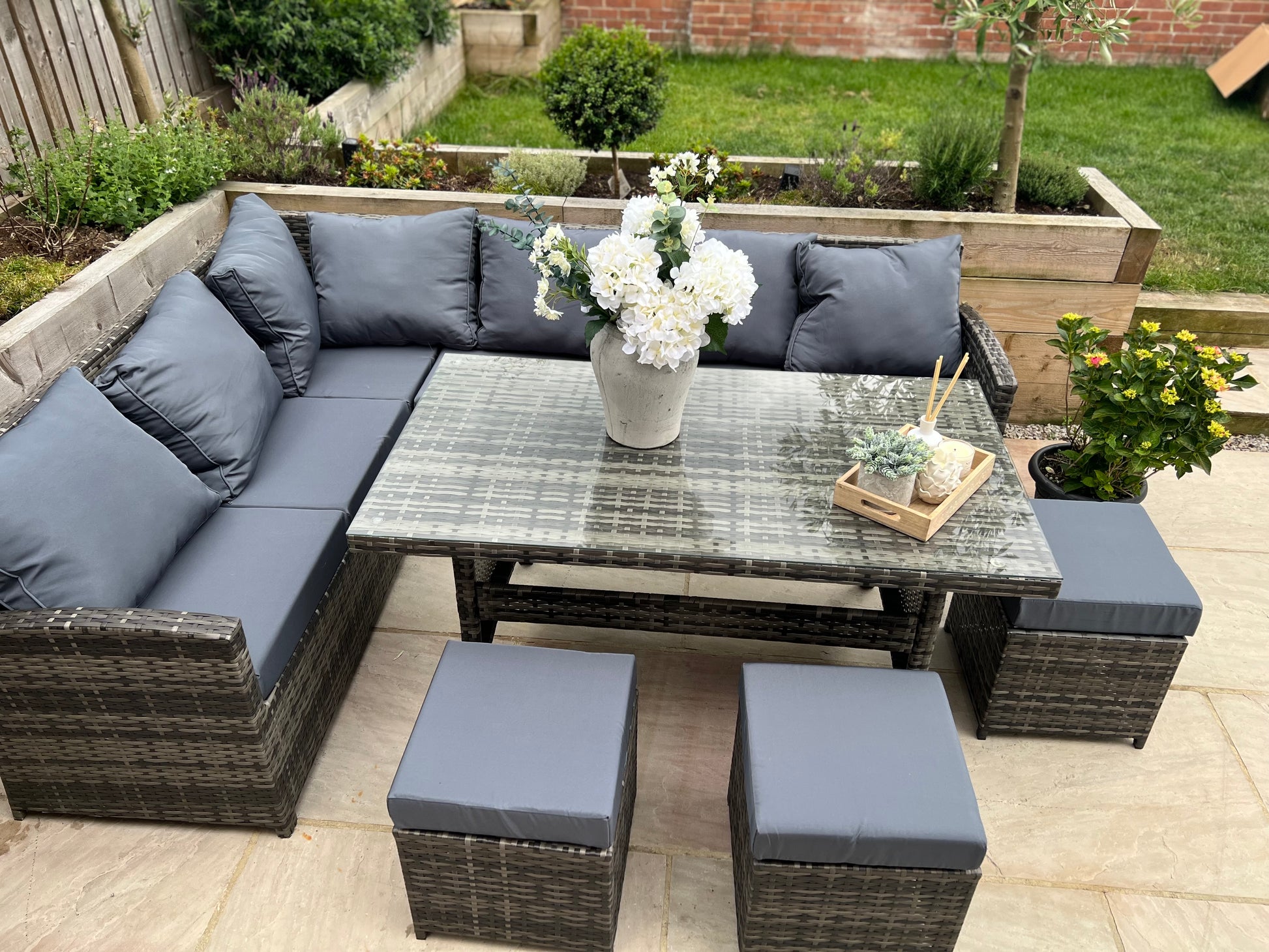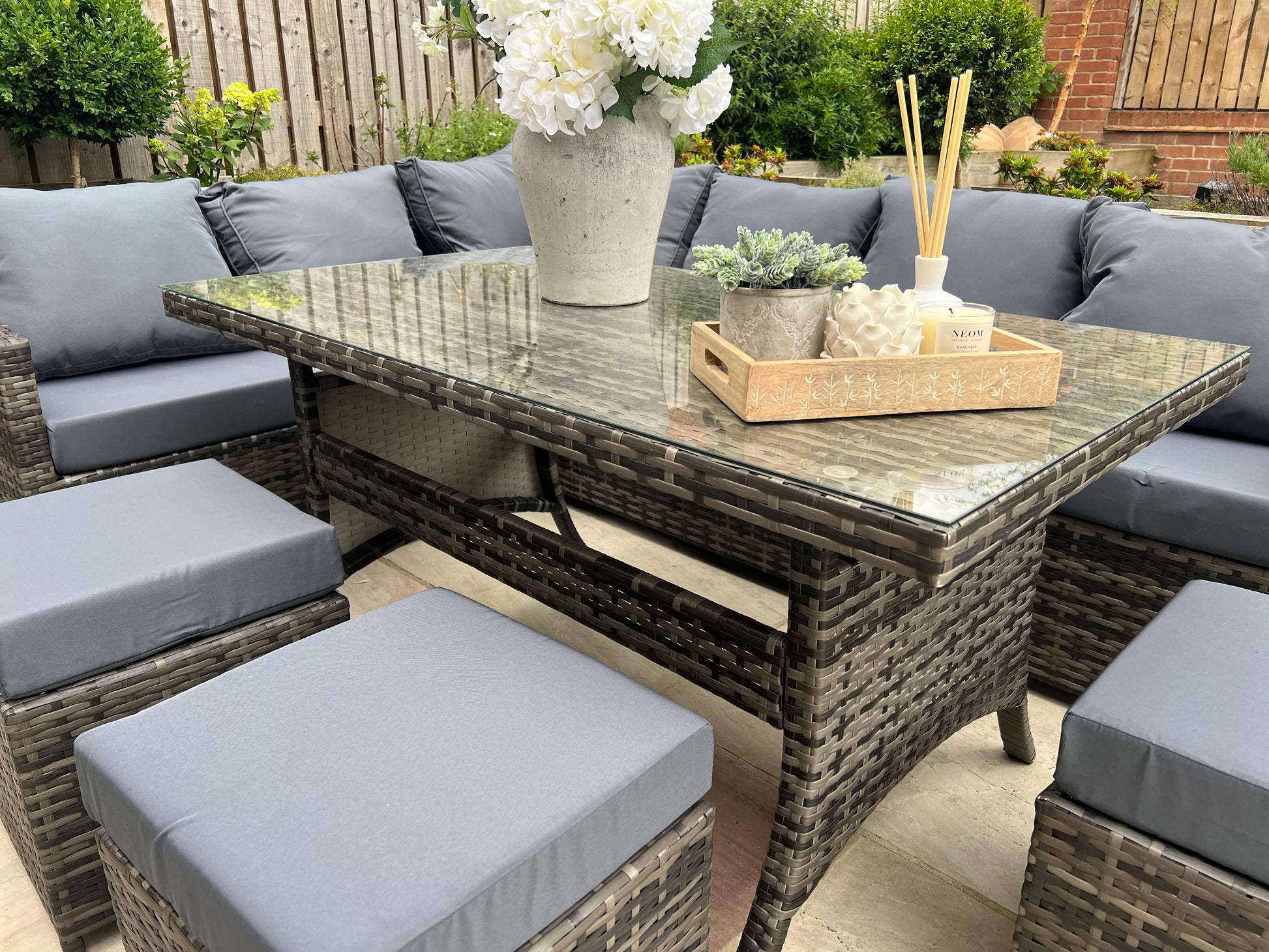 Amalfi Grey Rattan Corner Sofa and Table Set