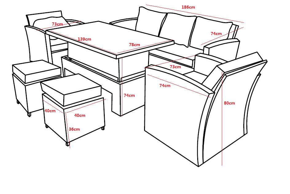 Table sizing: 72cm high, 140cm wide, 80cm diameter