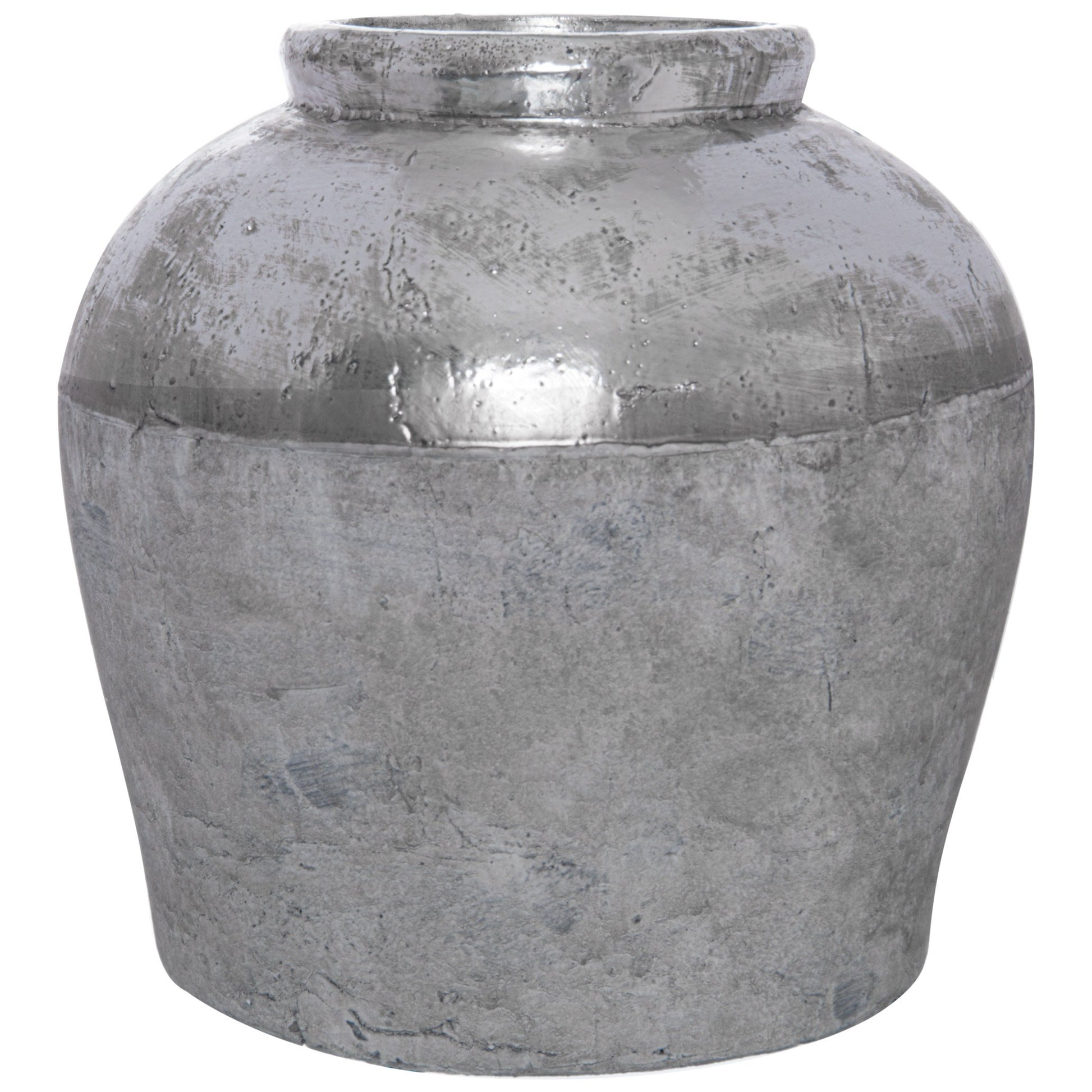 Use this vase as a centrepiece on a tablescape or style it on a console table, it's a great eye-catching piece that will suit many interior styles. The vase is multi tonal and showcases an aged stone effect in a grey tone as well as having a dimpled metallic top half. Additional versions available: 21756, 21755