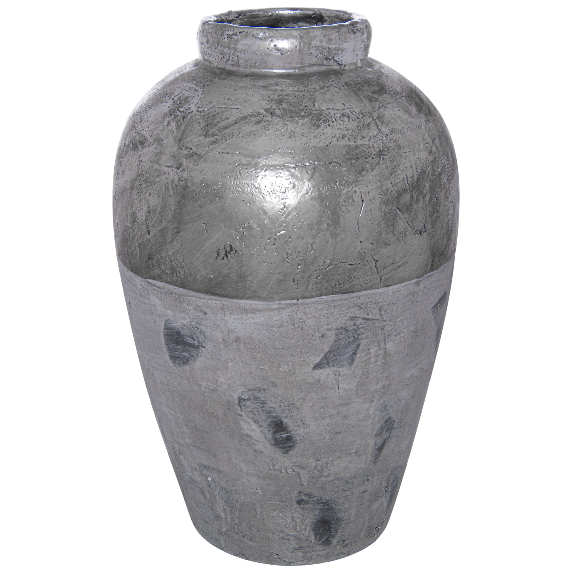 Style this vase on a piece of furniture or use it as a floor standing vase, a great eye-catching piece that will suit many interior styles. The vase is multi tonal and showcases an aged stone effect in a grey tone as well as having a dimpled metallic top half. Additional versions available:
